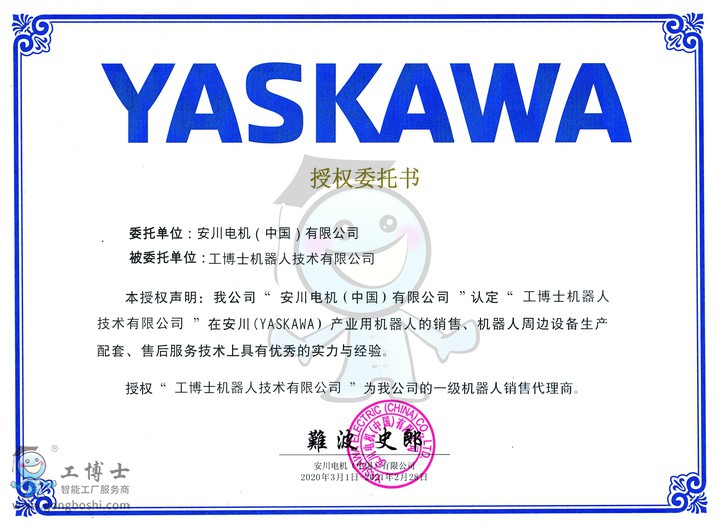 ABB機(jī)器人授權(quán)代理證書(shū)