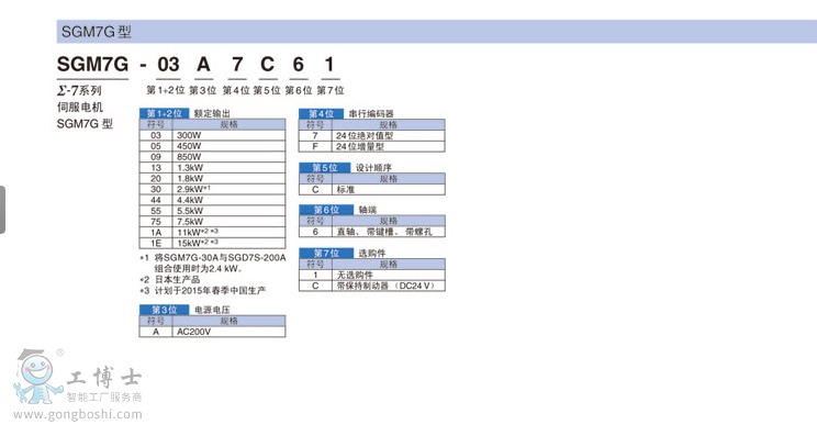 伺服電機(jī)(旋轉(zhuǎn)型)3KW SGM7G-30AFC6C+SGD7S-200A00A002 |