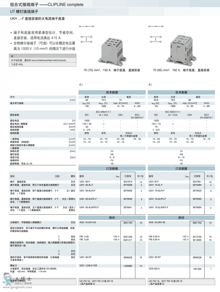菲尼克斯phoenix螺釘接線UKH 50-3L/FE-F訂貨號(hào)3076640原裝現(xiàn)貨 可開增票