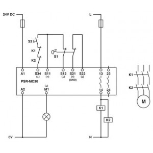 輸入電路與常開安全觸點輸出(13/14)和常開安全觸點輸出 |