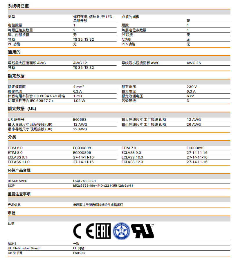 Weidmuller ASK 1/EN LD 1D 230VAC 魏德米勒 熔斷器型接線端子 |