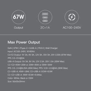 新斯寶67W2C1A氮化鎵充電器手機平板筆記本電腦PD快充電源插頭 |
