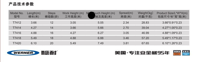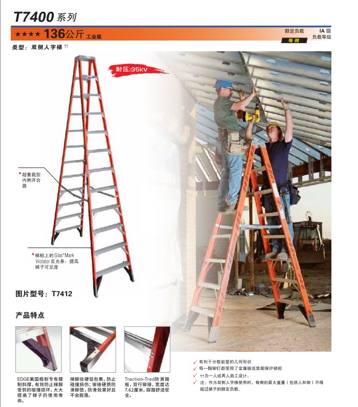 ●穩(wěn)耐 T7400 雙側梯的梯子每側具有 170kg 的負荷系數(shù)。